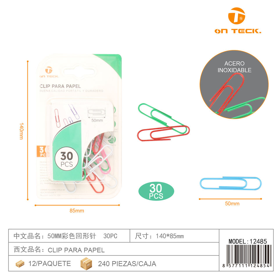 Clips de Papel On Teck de 50 mm, 30 Piezas, Acero Inoxidable, para Oficina y Escuela