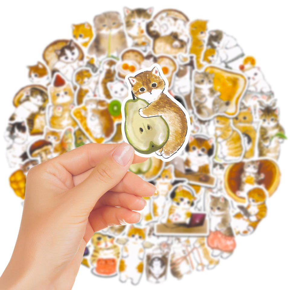 Arte de acuarela para gatos y bebés, arte de dibujos animados para gatitos, amantes de los niños, regalo kaiwaii, adhesivo divertido para gatos persas, 50 Uds.
