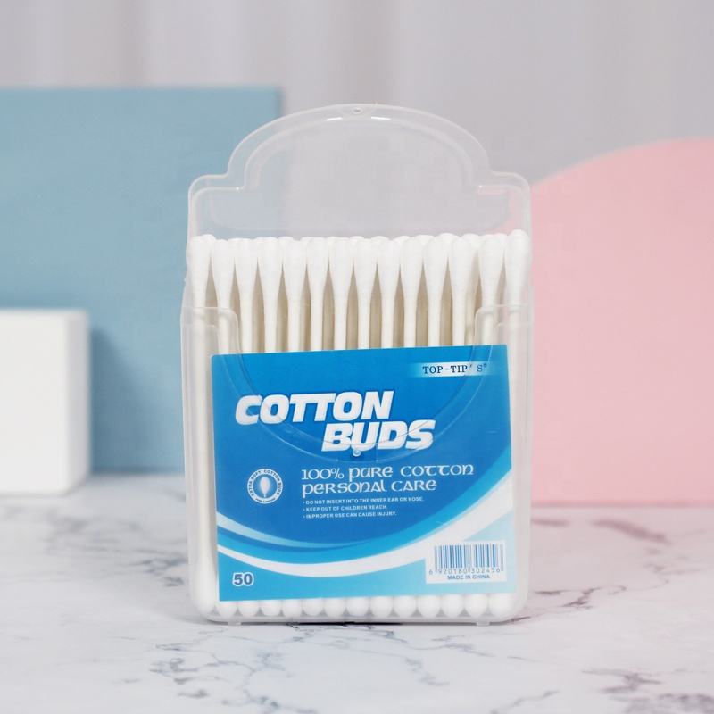 50 Hisopos de Algodón con Palito de Papel Blanco, Función de Apertura Fácil, Bastoncillos de Algodón para Limpieza de Oídos