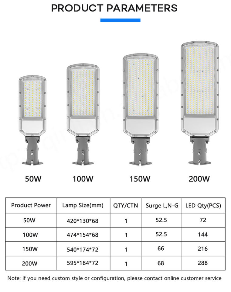 50W-200W AC Powered Impermeable IP65 Aluminio fundido a presión Farolas LED para uso en carretera