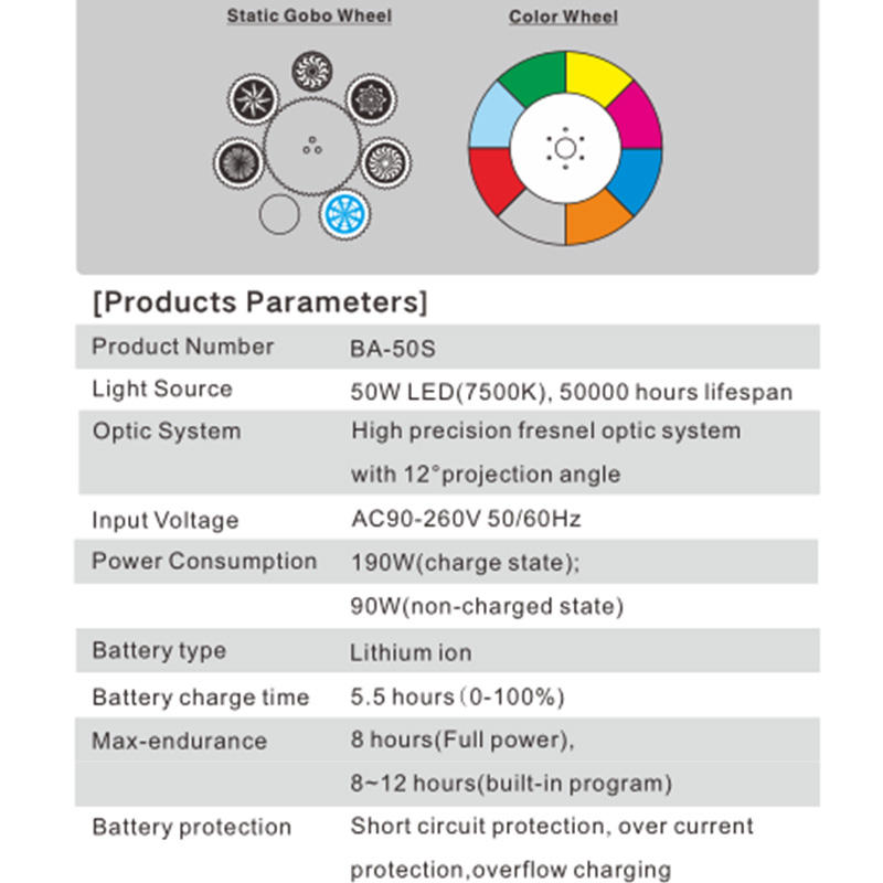 Cabezal móvil LED de 50W con batería