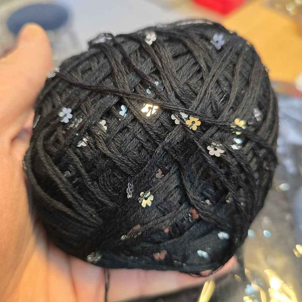 Hilo de lentejuelas grande negro de 50g, hilo elegante de lentejuelas de margaritas para ganchillo y patrón teñido de punto