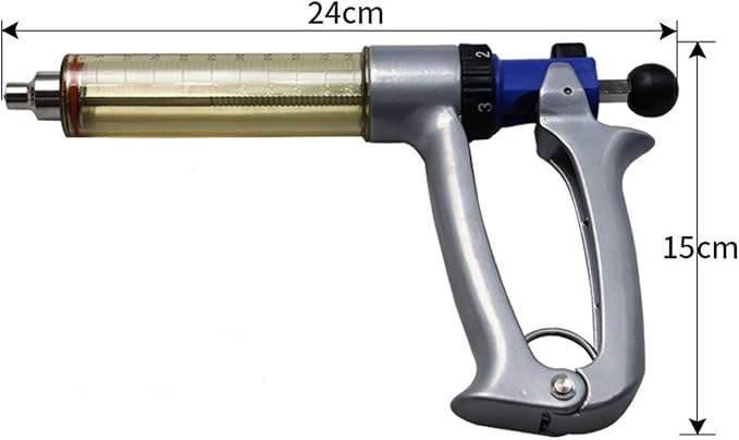 Jeringa Veterinaria Tipo Revólver de 50 ml, Pistola Inyectora Automática de Metal para Vacunas y Medicamentos