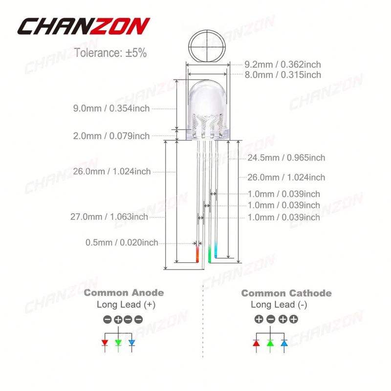 Polaridad:Ánodo (parte más larga) | Cátodo (parte más corta)