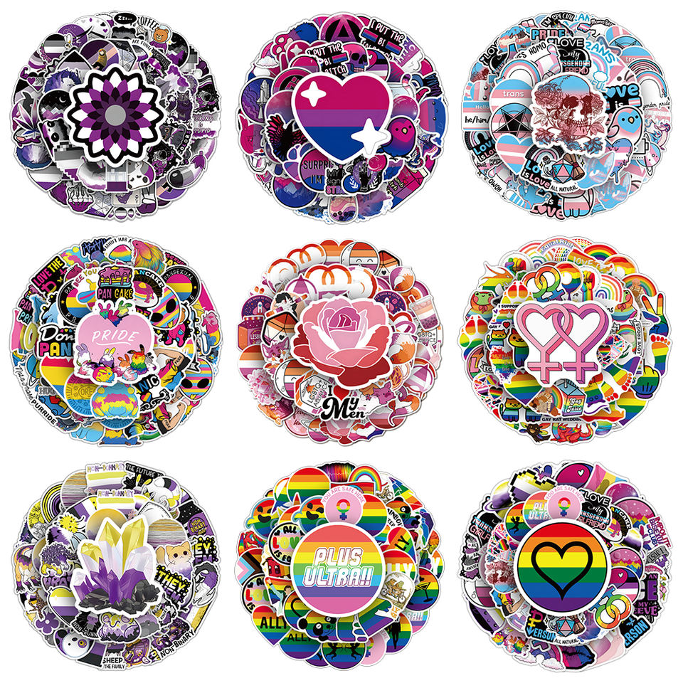 50 Uds. Pegatina de pared Gay colorida mixta, decoración de PVC impermeable personalizada, pegatinas de fiesta de homosexualidad para adultos, álbum de recortes de teléfono