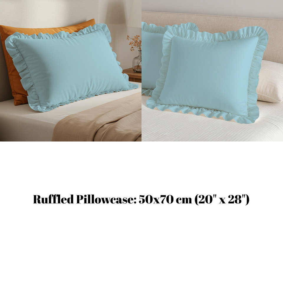 Funda de Almohada Rectangular Lisa de 50x70cm, Azul, con Volantes, de Polialgodón Tejido, con Cierre de Sobre, para Hotel, Hospital, Hogar