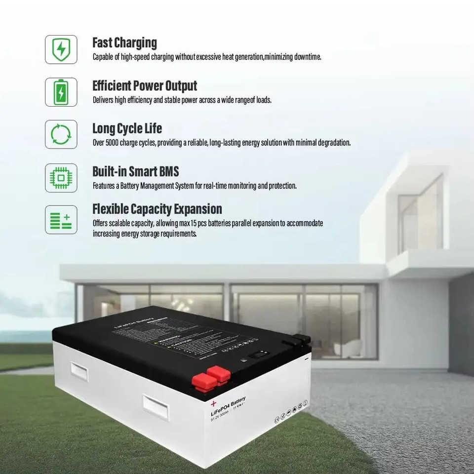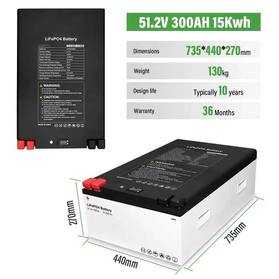 Sistema de Almacenamiento de Litio para Uso Doméstico de 51.2V 300Ah, Paquete de Baterías Solares de 15KW, BMS de 12V, Batería para Electrodomésticos, CAN 200ah, Almacenamiento de 10kwh