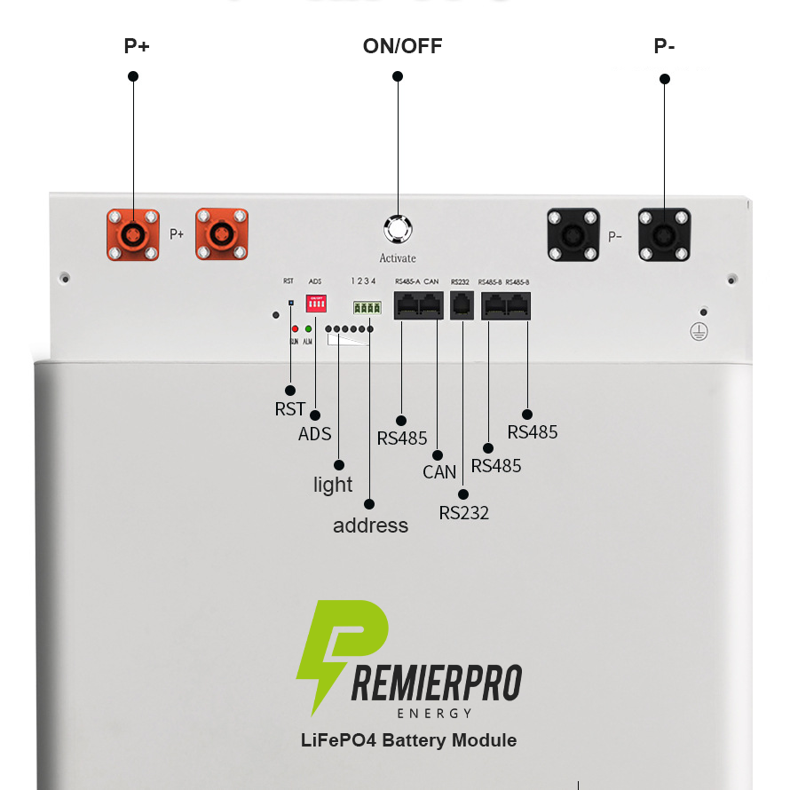Sistema Solar de batería de litio de 51,2 V, 300ah, 200ah, almacenamiento en el hogar, energía Lifepo4 para Powerwall, 15kwh, 10kwh, sistema Solar de suelo para el hogar
