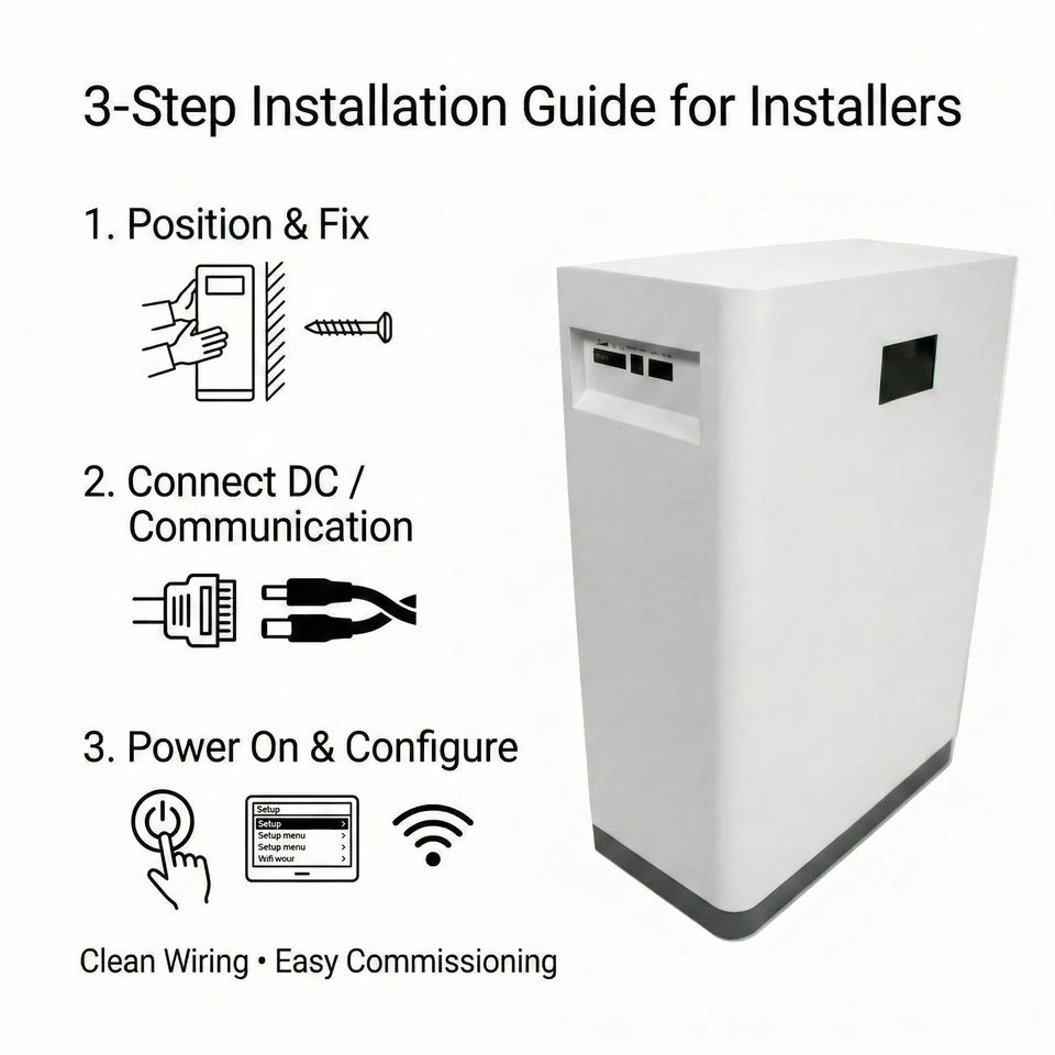 Batería de Pared de 51.2V para Almacenamiento de Energía Solar, Apilable, LiFePO4, 15kWh, Respaldo Doméstico, Conexión a Red, Puerto CAN RS485, Pantalla LCD