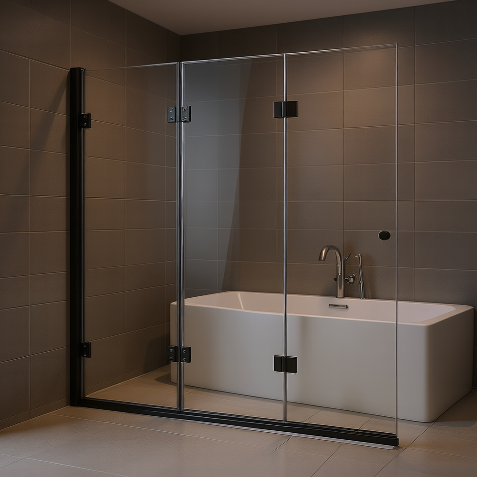 Puerta de Ducha Plegable sin Marco con Bisagras de 51 Pulgadas Ancho x 56 pulgadas Diseño rectangular de vidrio templado de 6 mm para ducha