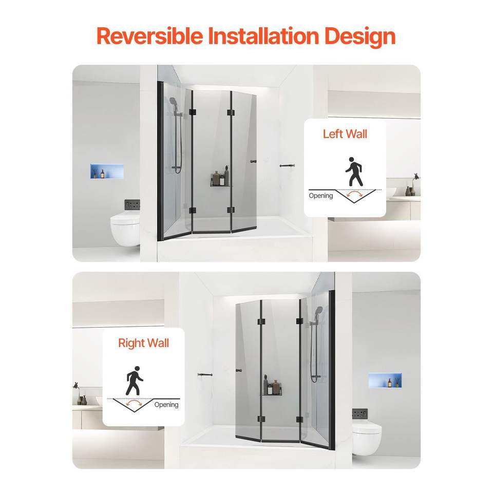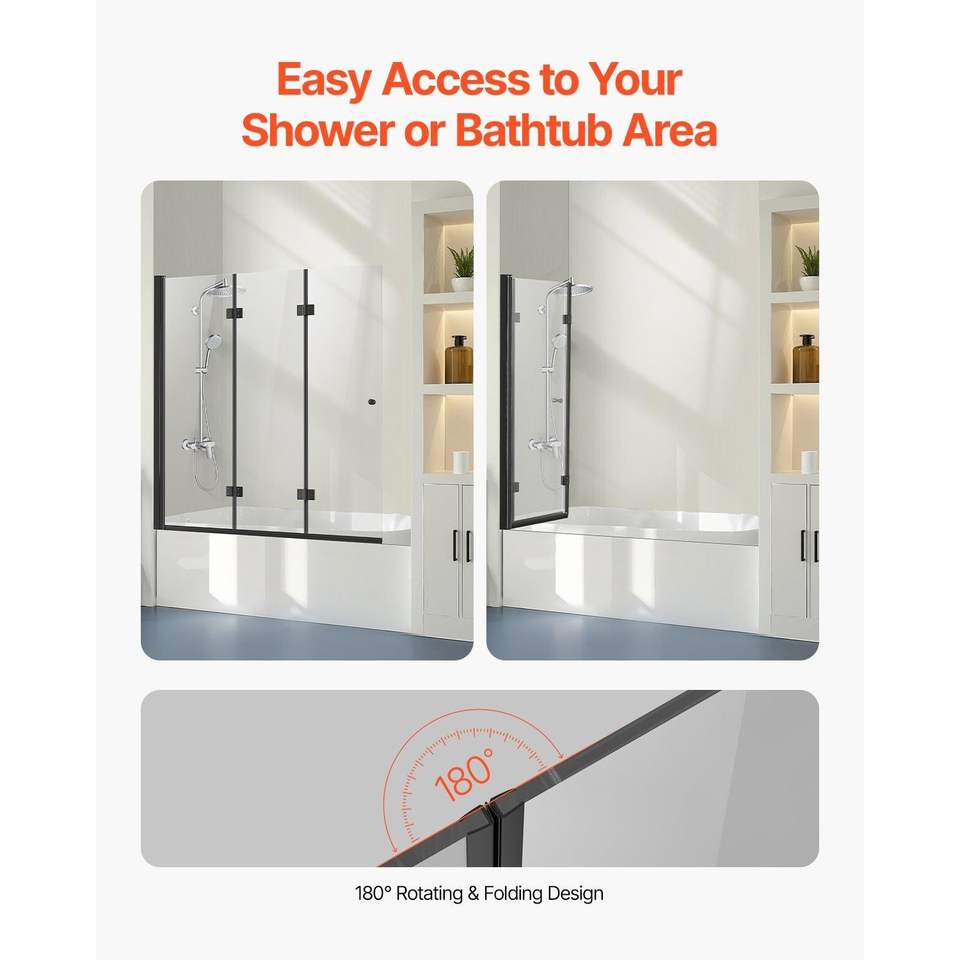 51 Pulgadas Ancho x 56 pulgadas Puerta de Ducha Plegable sin Marco con Bisagras, Puerta de Ducha para Bañera de Vidrio Templado Triple de 1/4