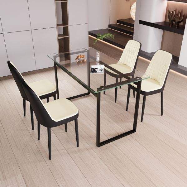 Juego de Mesa de Comedor Rectangular Moderna de Vidrio Templado de 51 Pulgadas, Juego de Mesa de Cocina para 4 Personas, Sillas con Patas de Metal Negro, Juego de Comedor