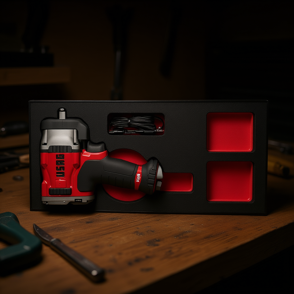 Estuche de Almacenamiento de Herramientas 519 M 943PC1 para Herramientas Eléctricas con Inserciones de Espuma Roja y Soporte para Cables