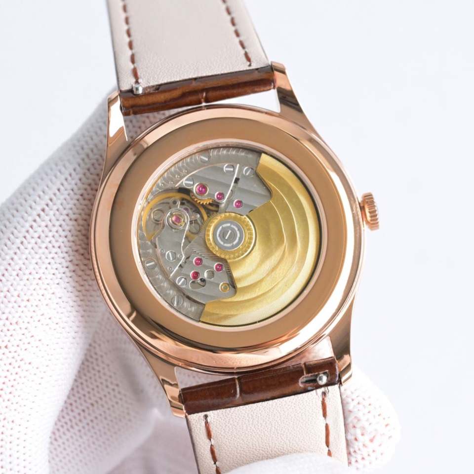 Reloj 5196 con Diseño de Anillo Plateado Simple, Esfera Dorada Rosa, Correa de Piel de Cocodrilo, Sistema de Segundero Independiente