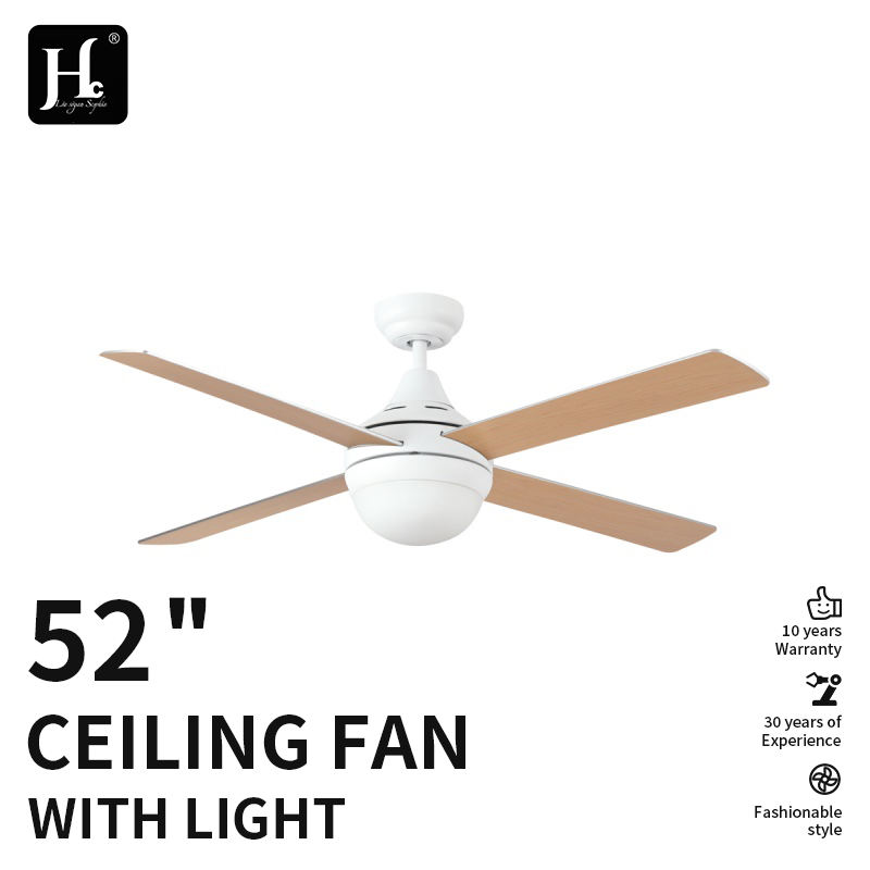 Ventilador de Techo de 52 Pulgadas (132 cm) con Aspas Reversibles Blancas, Iluminación LED, Control Remoto de Metal ABS para Exteriores y Hoteles, Enchufe Tipo Americano