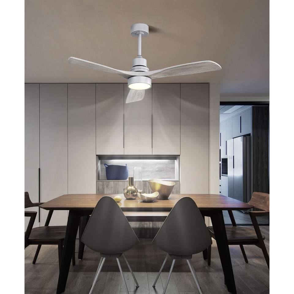 Ventilador de techo LED de 52 pulgadas con luz de Motor DC Reversible de 3 aspas de madera plateada remota de 6 velocidades para dormitorio