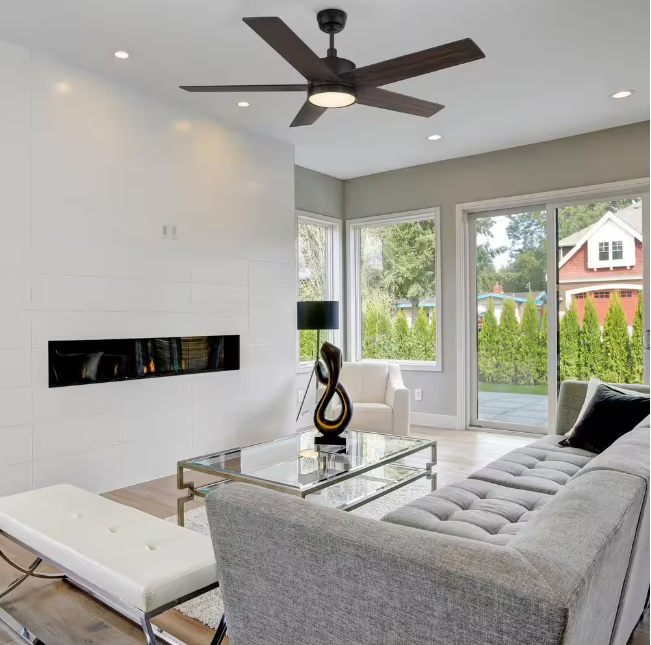 Ventilador de Techo Moderno Negro de 52 Pulgadas con 3 Aspas de Madera, Ventilador de Techo con Luz LED y Control Remoto