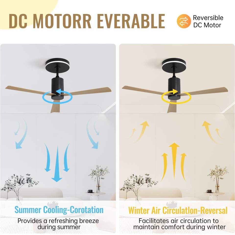 Ventilador de Techo LED Moderno de 52 Pulgadas con Control Remoto, 3 Aspas de ABS, Motor DC Reversible Silencioso para Patio