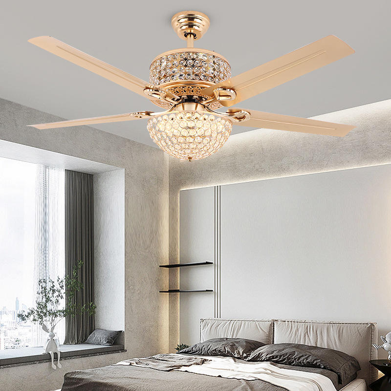 Ventilador de Techo LED de Cristal de 52 Pulgadas con Motor DC, 6 Velocidades, Aspas Retráctiles, Control Remoto, Reversible, 5 Aspas
