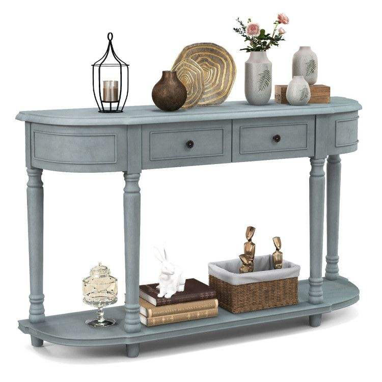 Mesa Consola Retro de 52 Pulgadas con 2 Cajones y Estante Abierto para Entrada o Área del Sofá