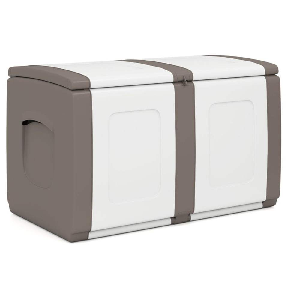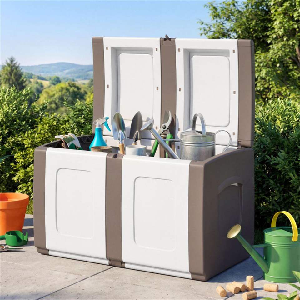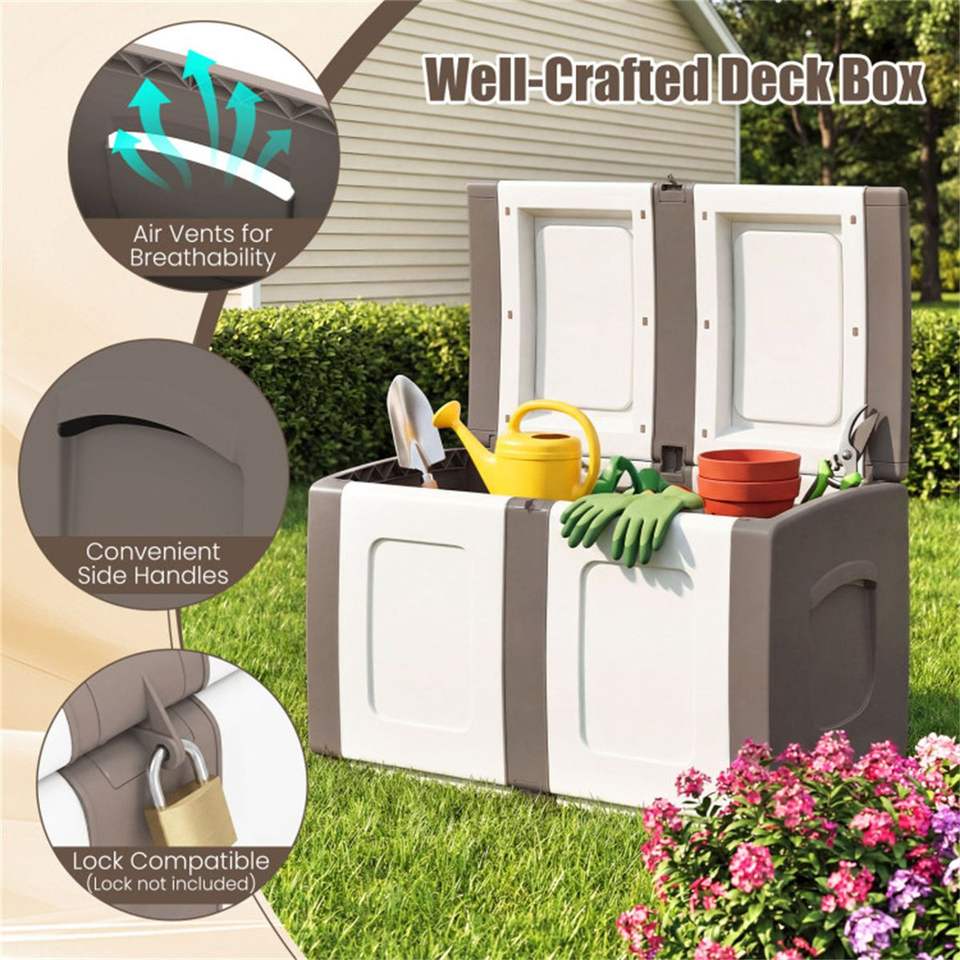 Caja de Almacenamiento Exterior Grande de 53 Galones, Color Beige, Impermeable, con Tapa con Cierre y Asas Laterales