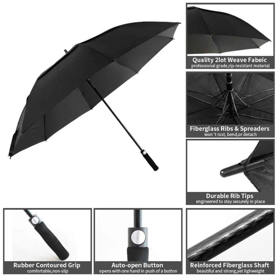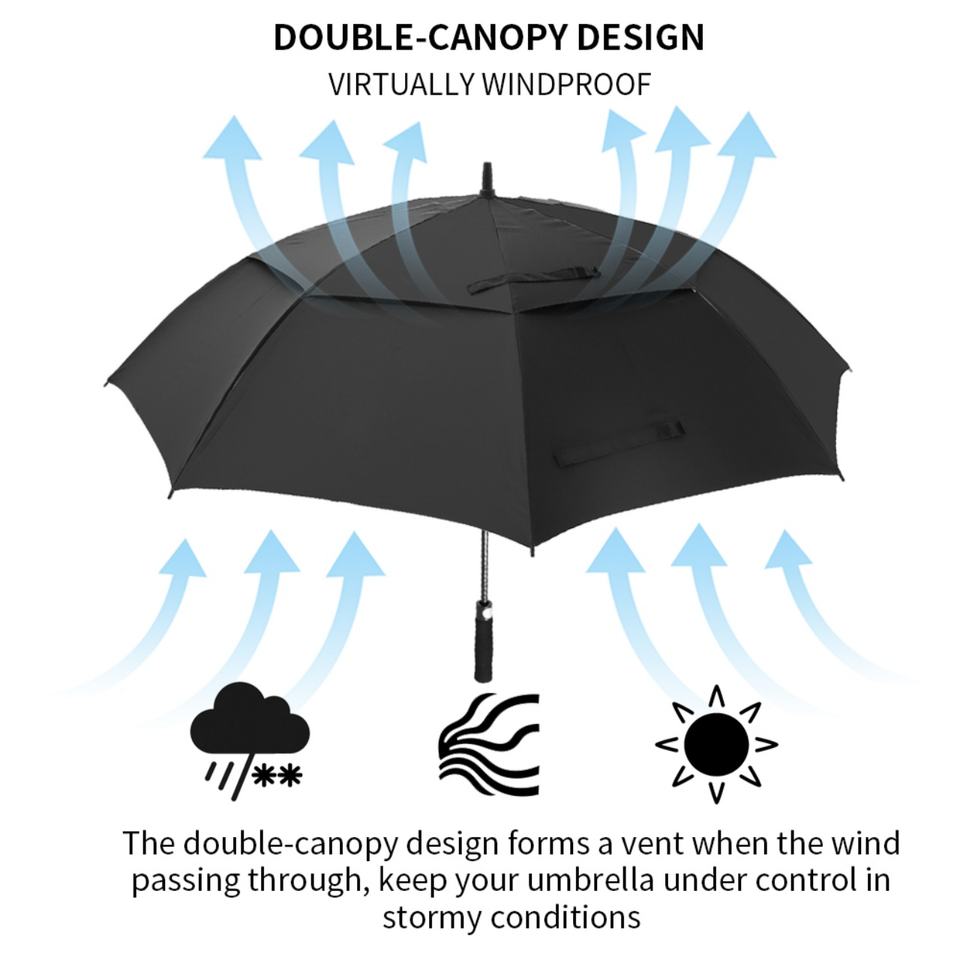 Paraguas de Golf Automático de 54/62/68/72 Pulgadas, Personalizado, Extra Grande, Doble Toldo Ventilado, Resistente al Viento e Impermeable