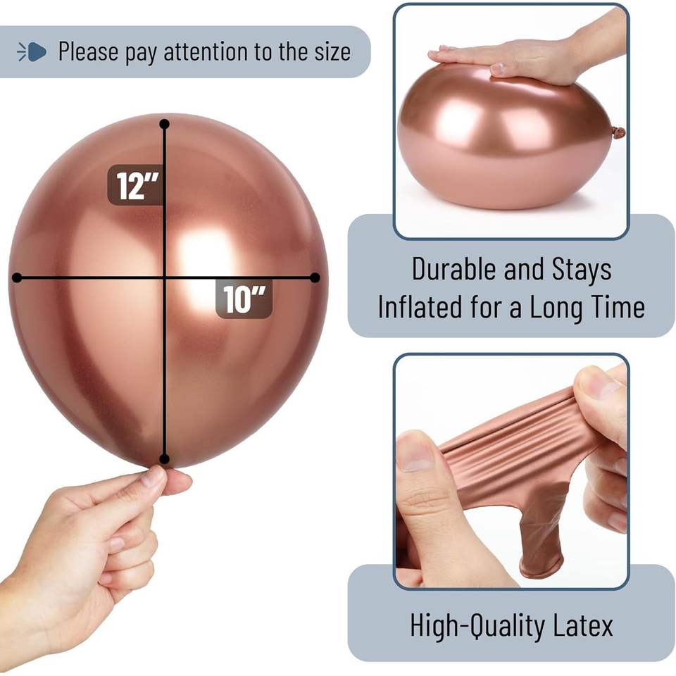 Paquete de 54 Globos Metálicos Rosa Dorado de 12 Pulgadas para Decoraciones Festivas