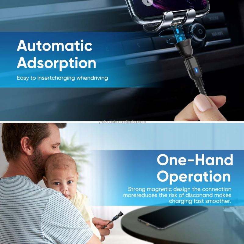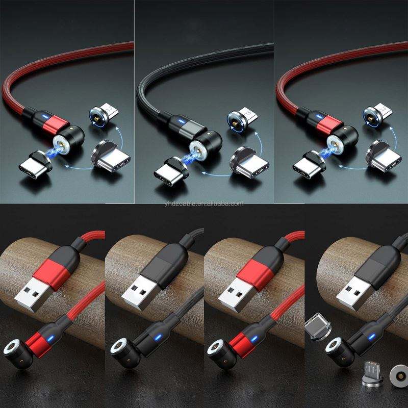 Cable de Carga Magnético Giratorio de 540°, 1M 2M 3M, Cable USB Magnético Trenzado de Nailon 3 en 1 para iPhone, Samsung, Dispositivos Micro USB/Tipo C