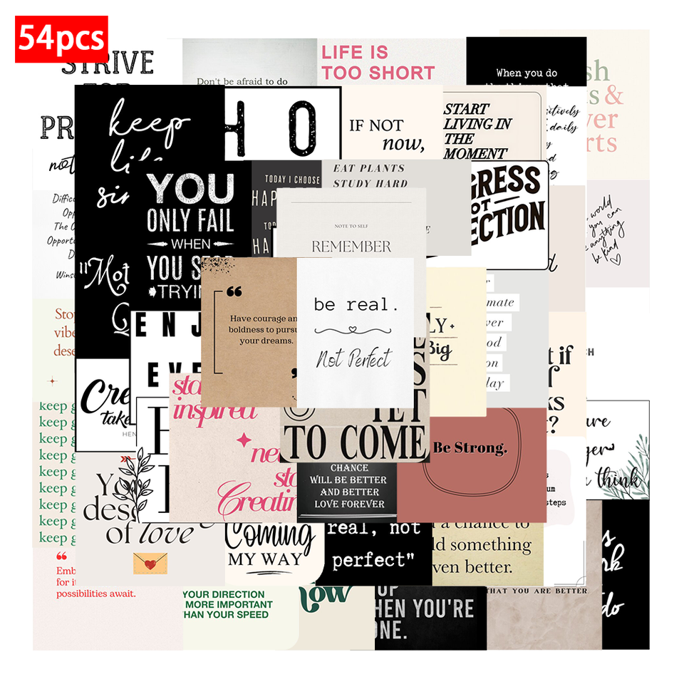 54 Uds texto inspirador pegatinas en inglés paquetes de pegatinas de PVC impermeables para equipaje de portátil funda de teléfono portátil mochila taza