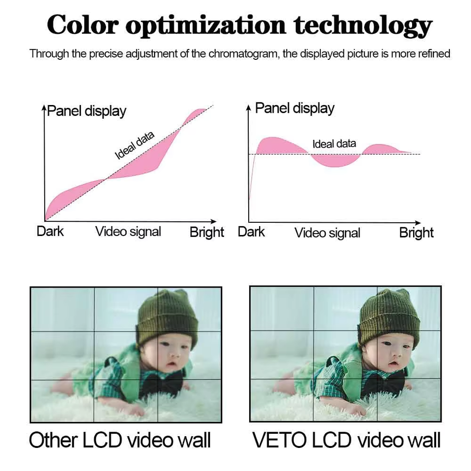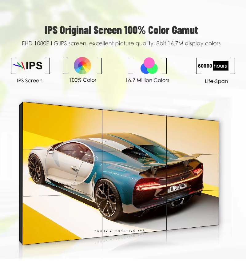 Video Wall LCD de 55 Pulgadas, Bisel Super Delgado de 0.88mm, 4k UHD, IP65, Soportes Frontales PoP Out, 3x3, para Centros Comerciales y Tiendas Minoristas