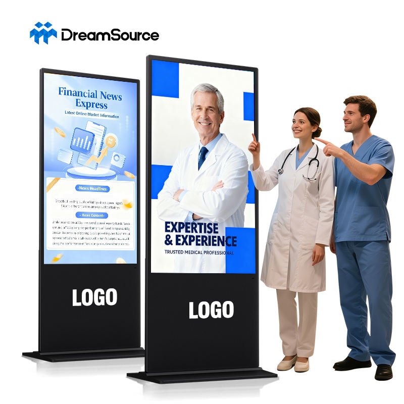Kiosco Publicitario Vertical Móvil de 55 Pulgadas, Reproductor Multimedia con Resolución 4K, Tótem con Pantalla Táctil, Señalización Digital para Centros Comerciales