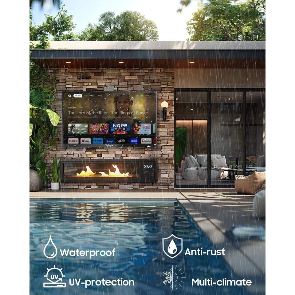 Televisor Inteligente para Exteriores de 55 Pulgadas, 4K UHD, 2000Nit, Ultra Brillante, Legible Bajo la Luz Solar, Resistente al Agua, con Control por Voz Integrado y Función de Pantalla Compartida