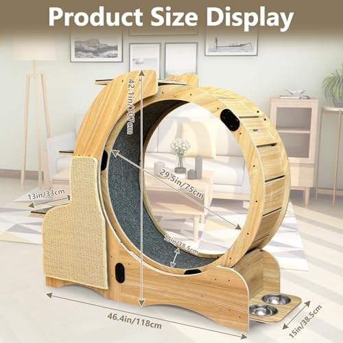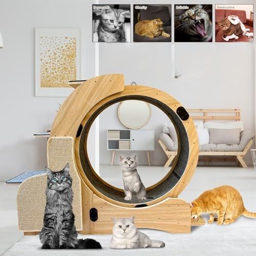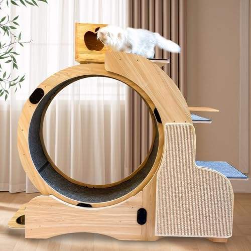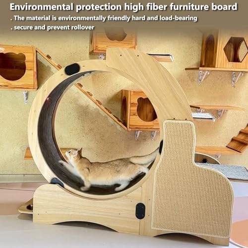 Rueda de ejercicio para gatos de madera de 55 pulgadas, tabla de rascar, alfombrilla desmontable, marco de escalada, nido 5 en 1, mascota de interior multifuncional