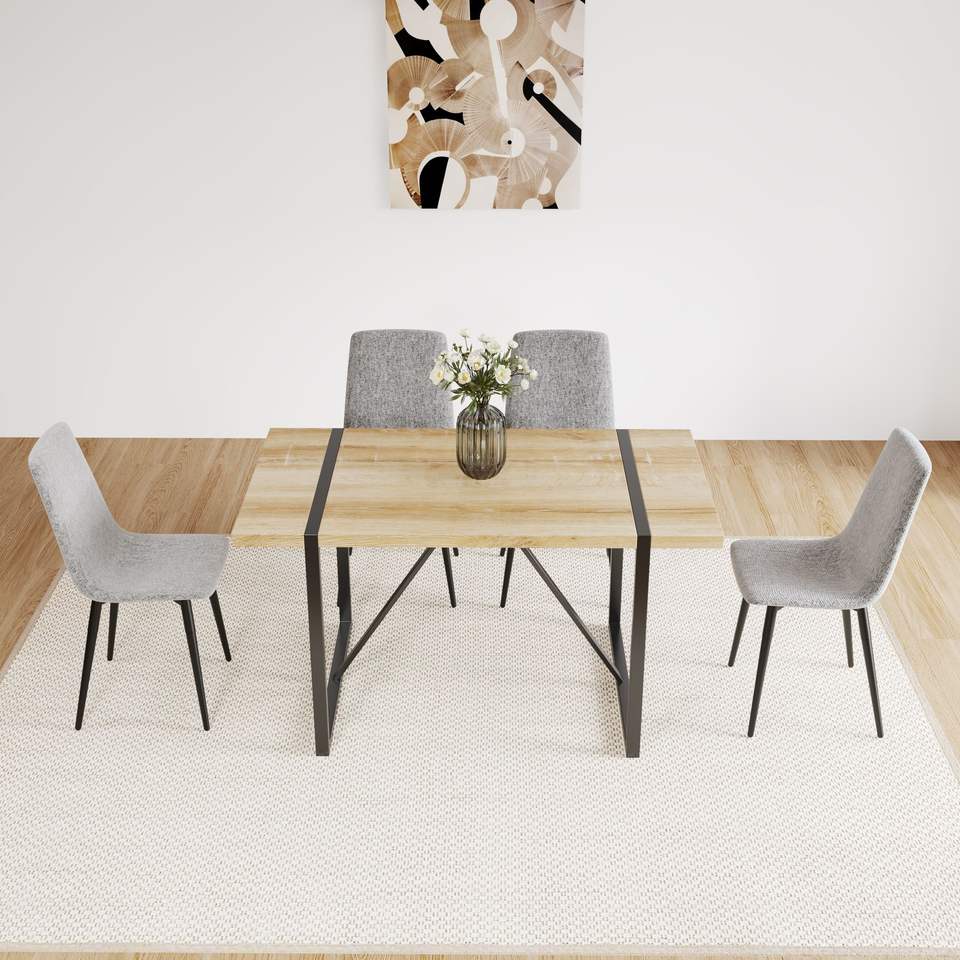 Juego de Mesa de Comedor Moderno de 55 Pulgadas con 4 Sillas, Mesa de Cocina de Madera de Estilo Mediados de Siglo con Base de Metal y Patas de MDF, Ideal para el Comedor del Hogar