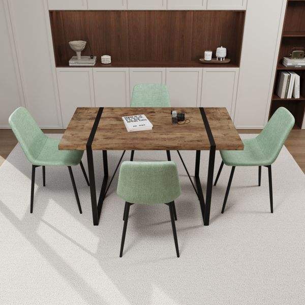 Juego de Comedor Moderno de 55 Pulgadas, MDF en Madera Oscura con 4 Sillas de Cocina de Madera Estilo Medieval, Diseño Rectangular de Metal para Comedor