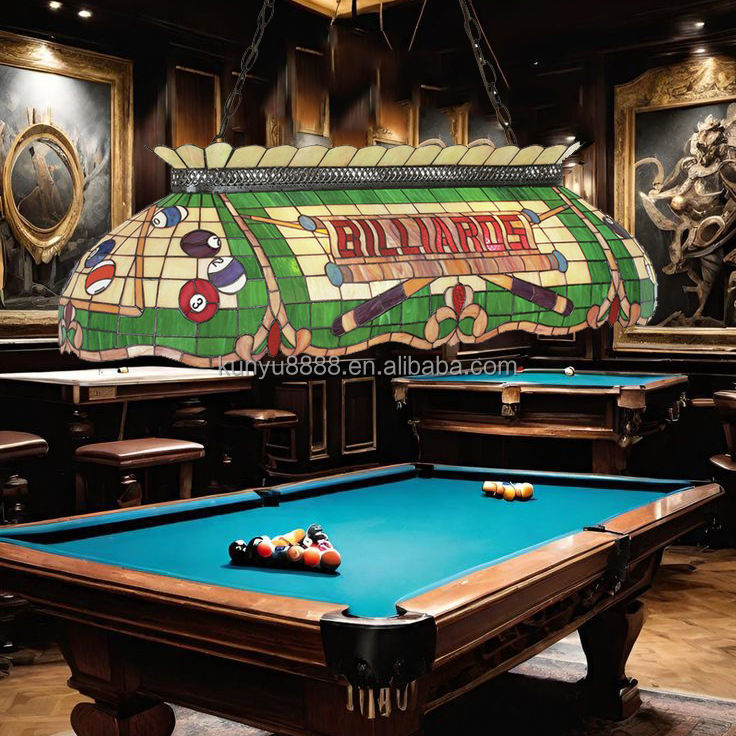 Lámpara de Mesa de Billar LED Tiffany de 55'' con Vidrio Tallado, 6 Luces, Lámpara de Araña para Sala de Billar y Snooker, Hecha a Mano, Control Táctil, 2700K