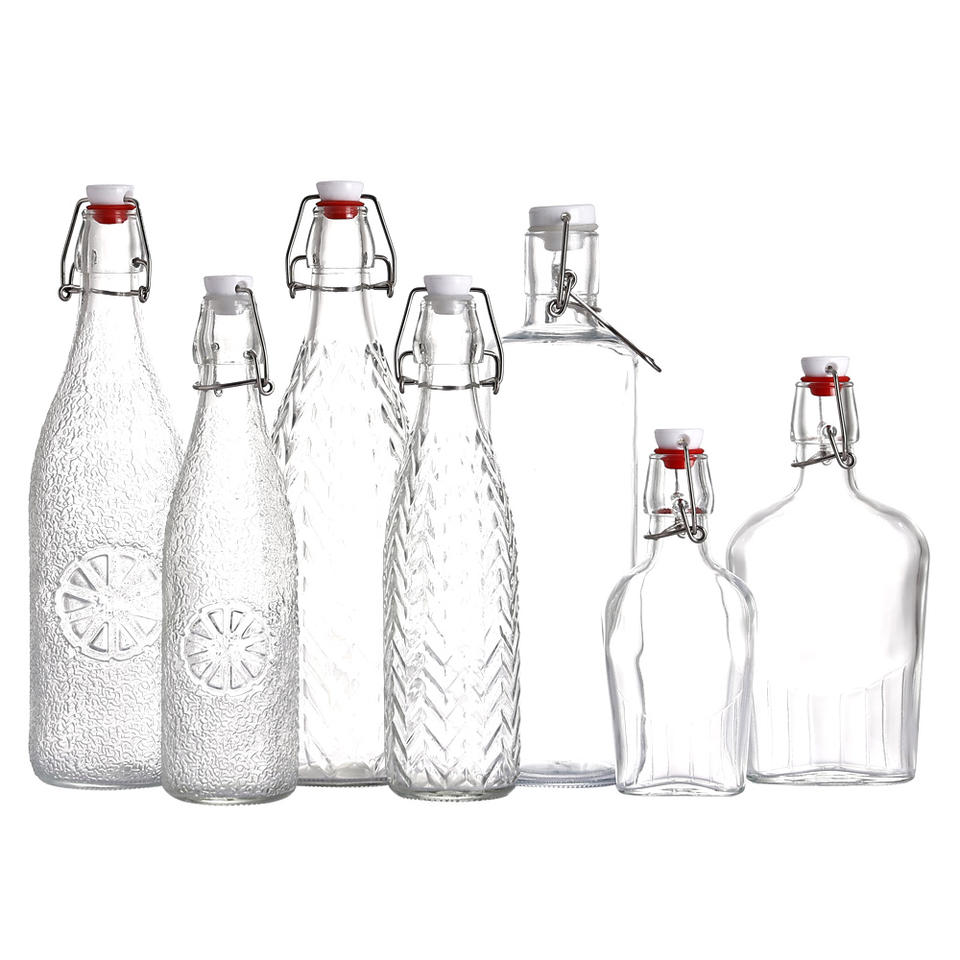 550ml naranja mandarina limón patrón en relieve texturizado Flip EZ Top Latch Super Flint botella de bebida de vidrio Jiangsu al por mayor