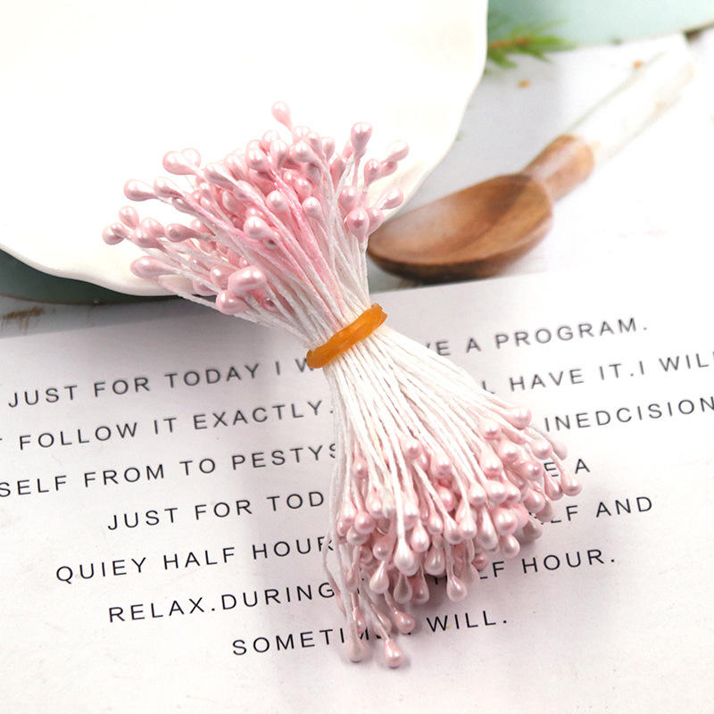 Nombre del Producto:Estambres de flores hechos a mano con doble cabeza de perlas de colores mezclados