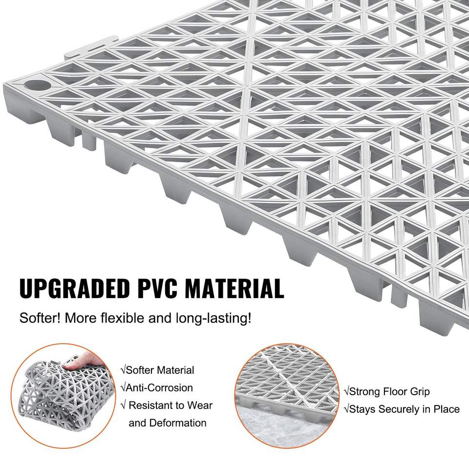 55 Piezas de Baldosas de PVC Grises Encajables de 30x30x1.5 cm, Antideslizantes, con Orificios de Drenaje, Suelo de Plástico Suave para Ensamblar, 55 Piezas Grises