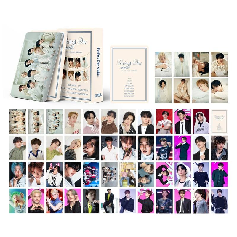 55 unids/set KPOP Stray Kids HD Photocards doble cara LOMO tarjetas INS postal en caja Felix Hyunjin Seungmin Bangchan I.N Fans regalo