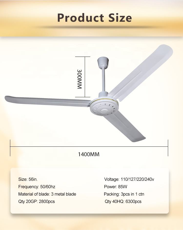 Ventilador de Techo de CA Estilo SMC de 56 Pulgadas con Tres Aspas Metálicas Planas para el Mercado Sudamericano
