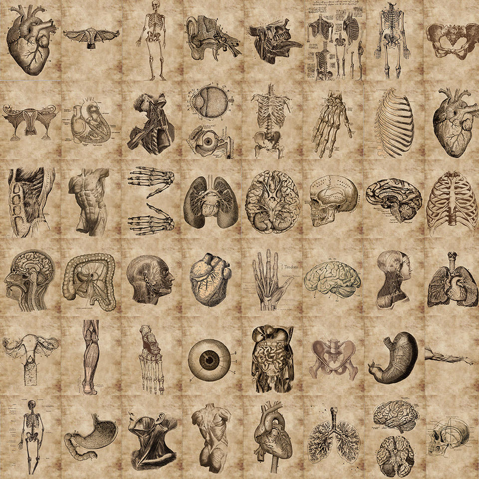 56PCS Modelo de esqueleto médico Póster antomical de cuerpo completo para pegatina de esqueleto humano vívido vintage