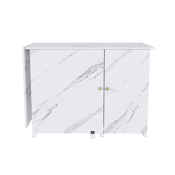 Mesa Plegable para Máquina de Coser Eléctrica de 57.5 Pulgadas con Ruedas con Bloqueo, Estación de Manualidades Multiusos con Estantes, Contenedores y Gabinete Ajustable