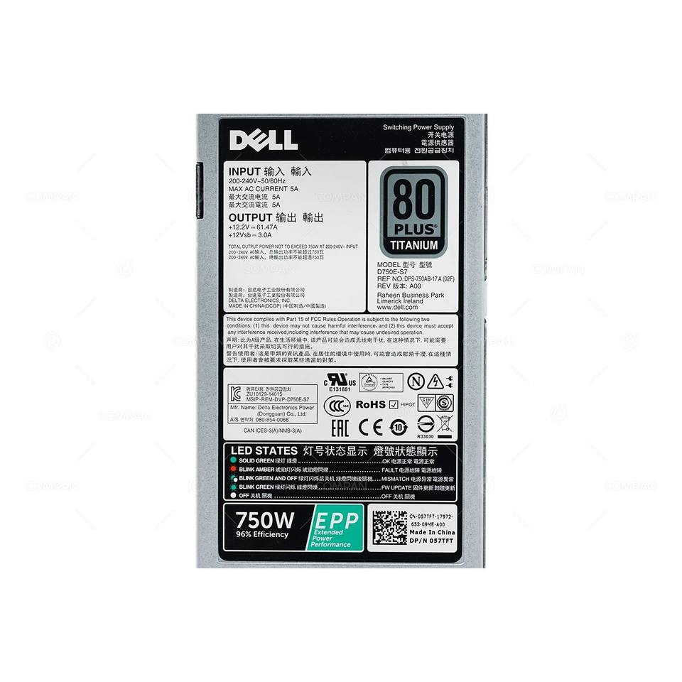 Fuente de Alimentación DELL 57TFT 750W 80 PLUS TITANIUM para POWEREDGE R630 R730 R730XD R830 R930 R540 R640 R740 R940 T430 T630