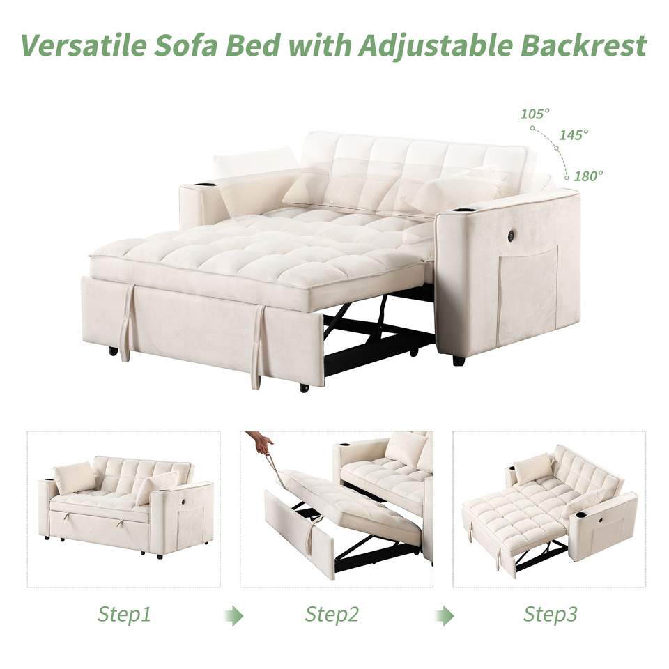 Sofá Cama Multifuncional 4 en 1 de 58 Pulgadas con Portavasos y Puerto USB para Sala de Estar o Apartamentos