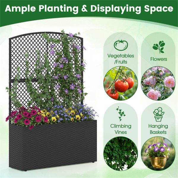 Jardinera Elevada de Mimbre Sintético Negro de 58 Pulgadas con Patas Ajustables, Enrejado y Puertas, Modelo D0100XFAF8G