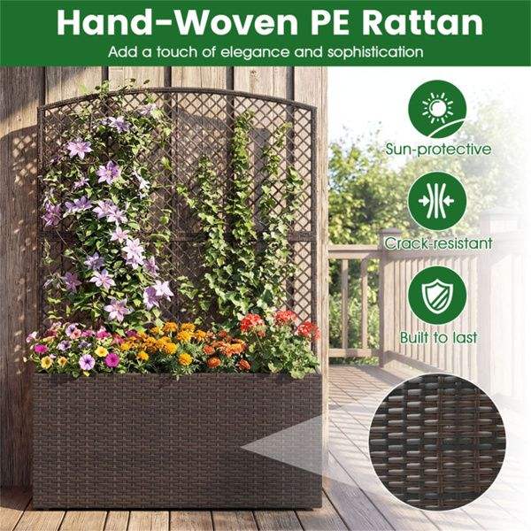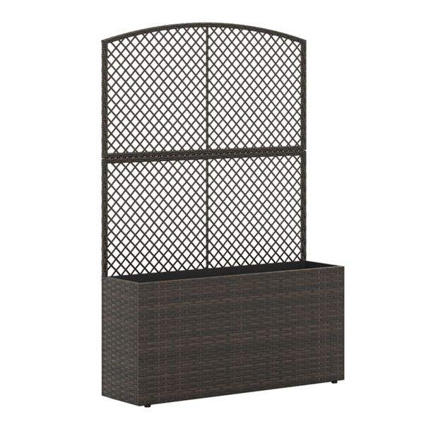 Jardinera Elevada de Mimbre Sintético Marrón de 58 Pulgadas con Almohadillas Ajustables, Enrejado y Puertas