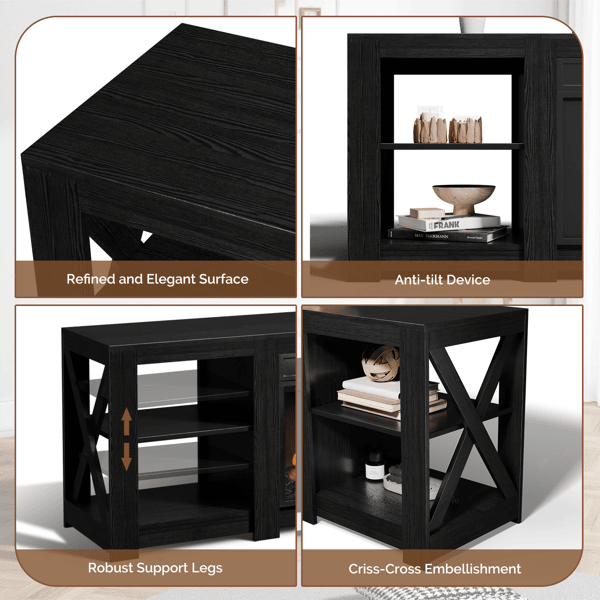 Chimenea Eléctrica Independiente de Doble Cara Negra de 58 Pulgadas con Núcleo de 18 Pulgadas, 149x40x60cm, Consola para Chimeneas Eléctricas