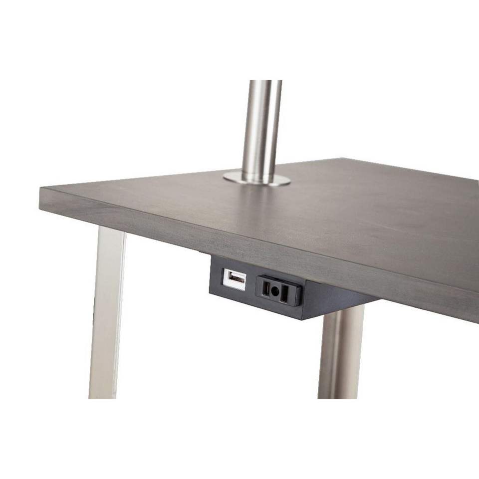 Lámpara de pie cuadrada Dru de 58 pulgadas de altura con puerto USB y carga conveniente en color plateado