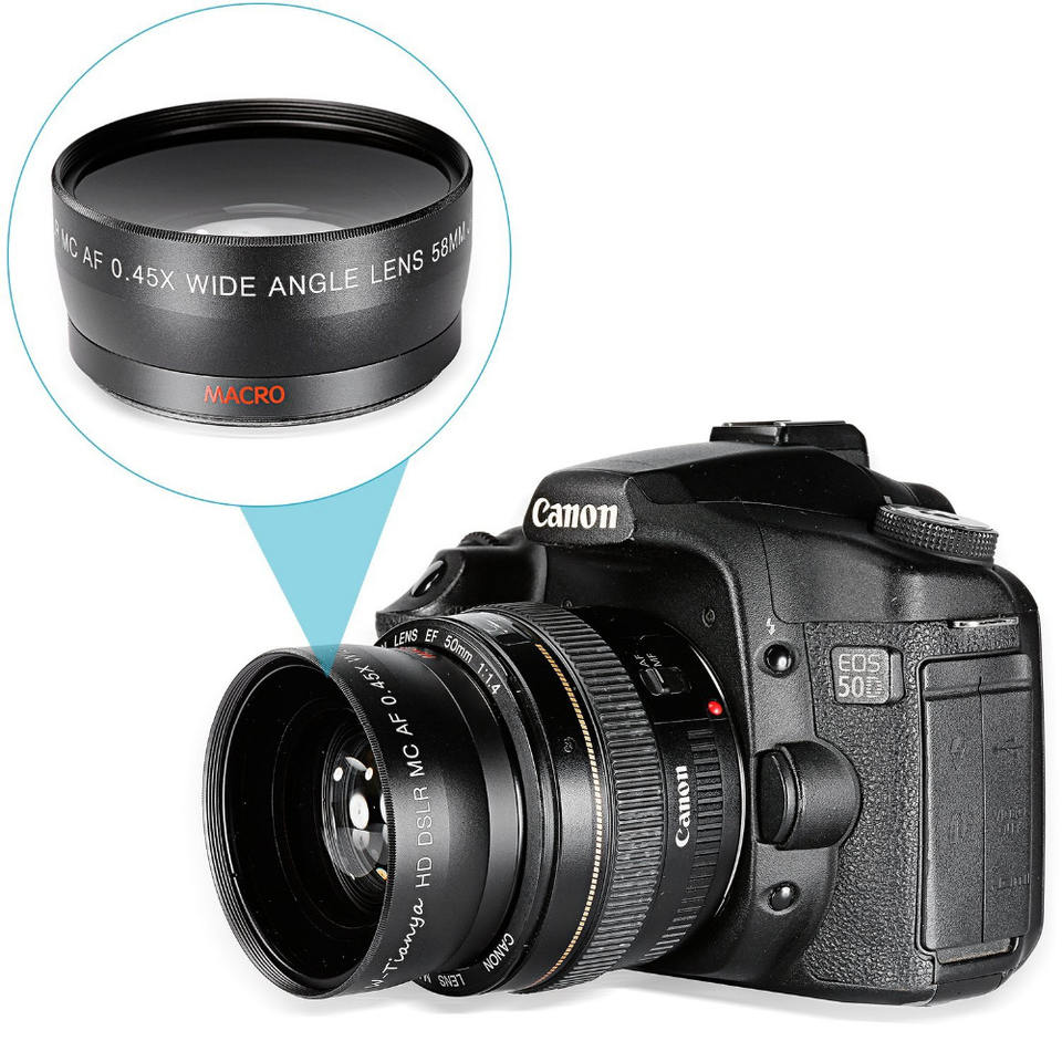 Lente Macro gran angular para Canon 5D/60D/ 70D/350D / 400D / 450D / 500D /1000D/ 550D / 600D /1100D 18-55MM, 58MM, 0.45x